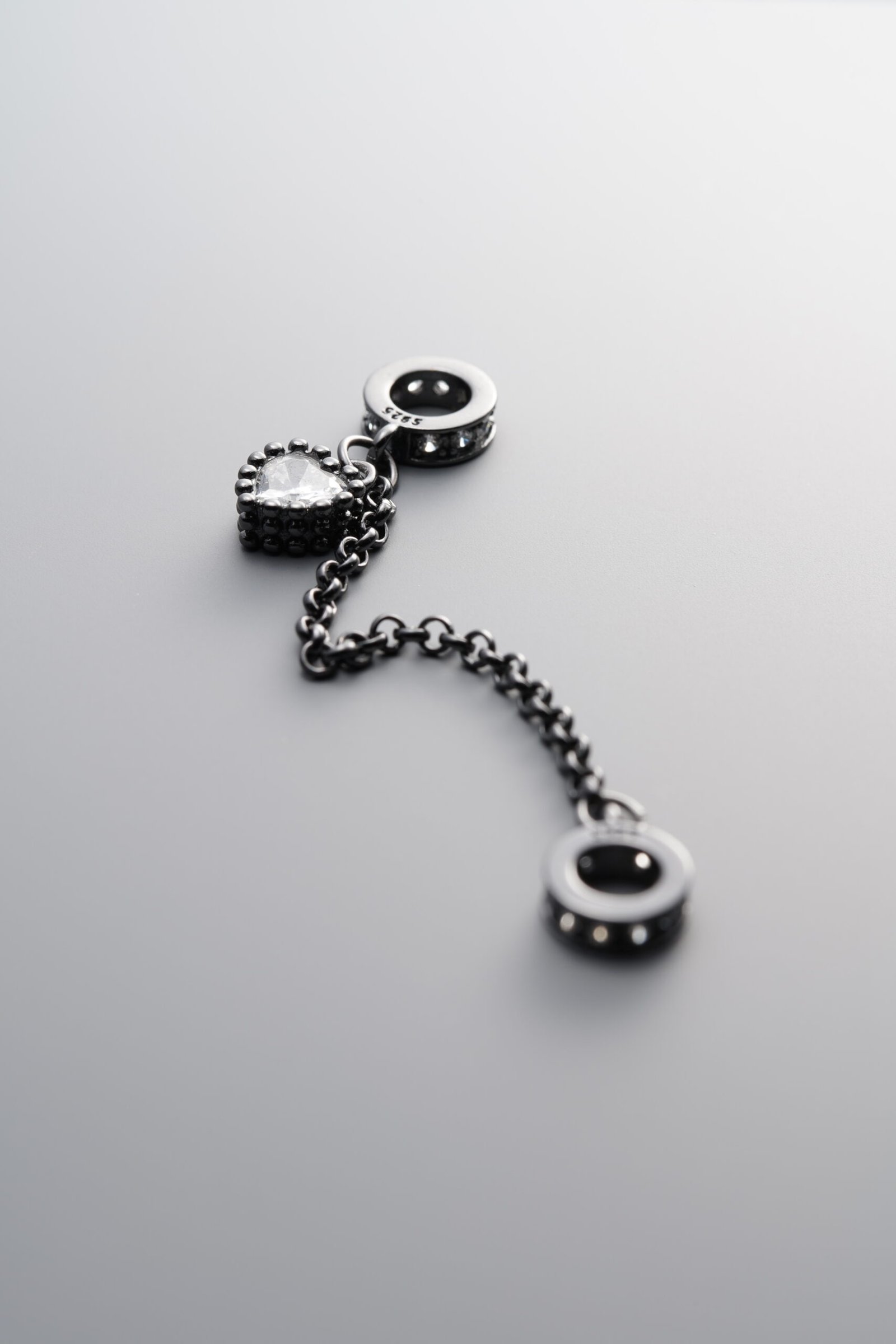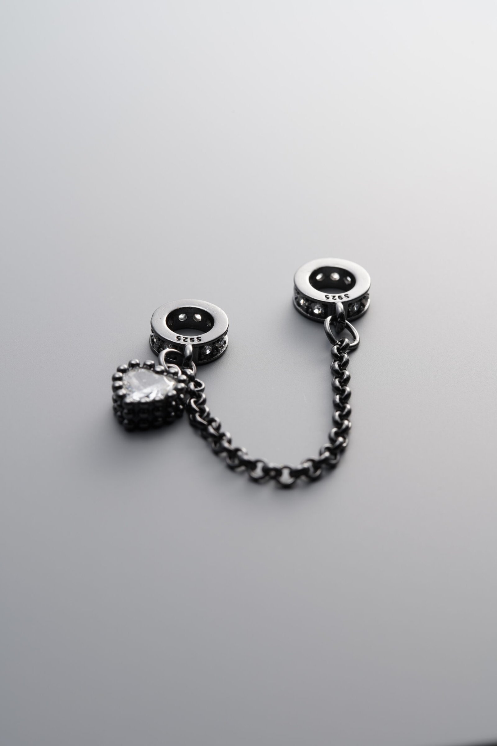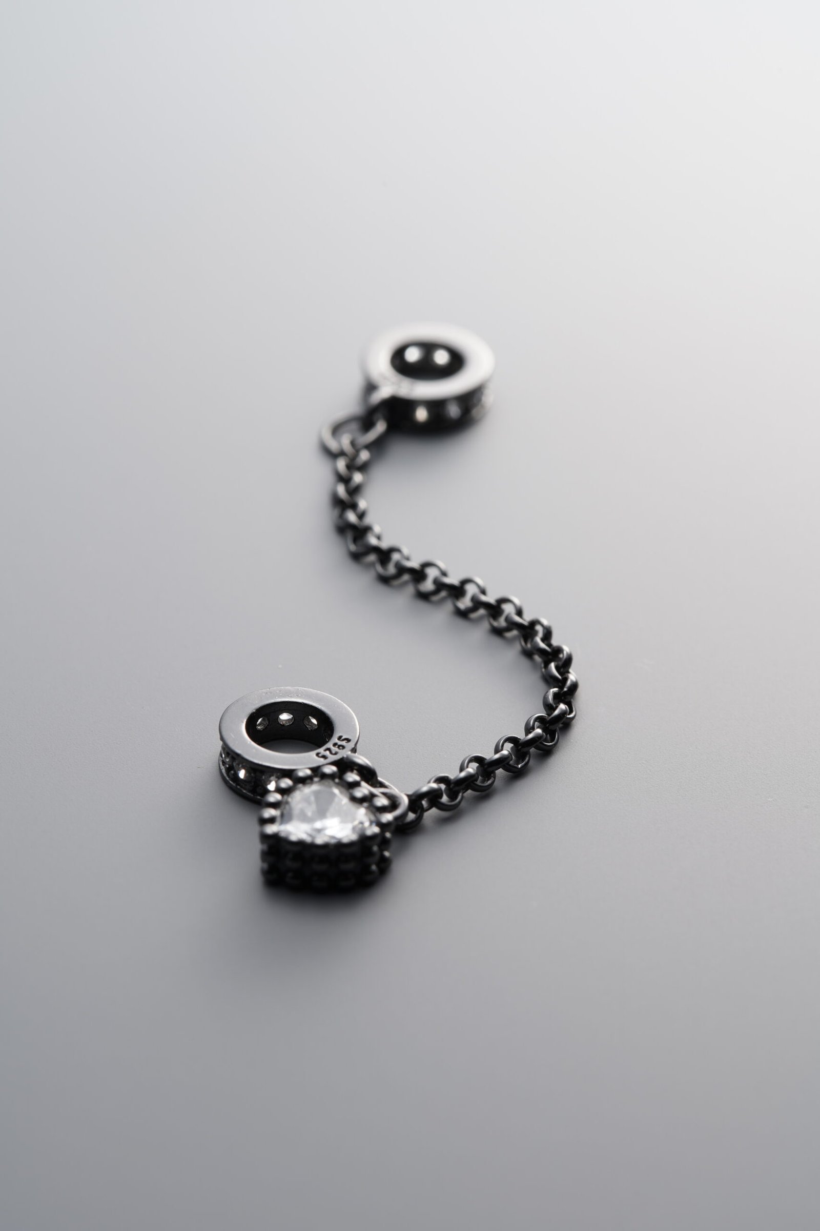 925 Sterling Silver-Black Plated-Zircon Chain Link-64mm
