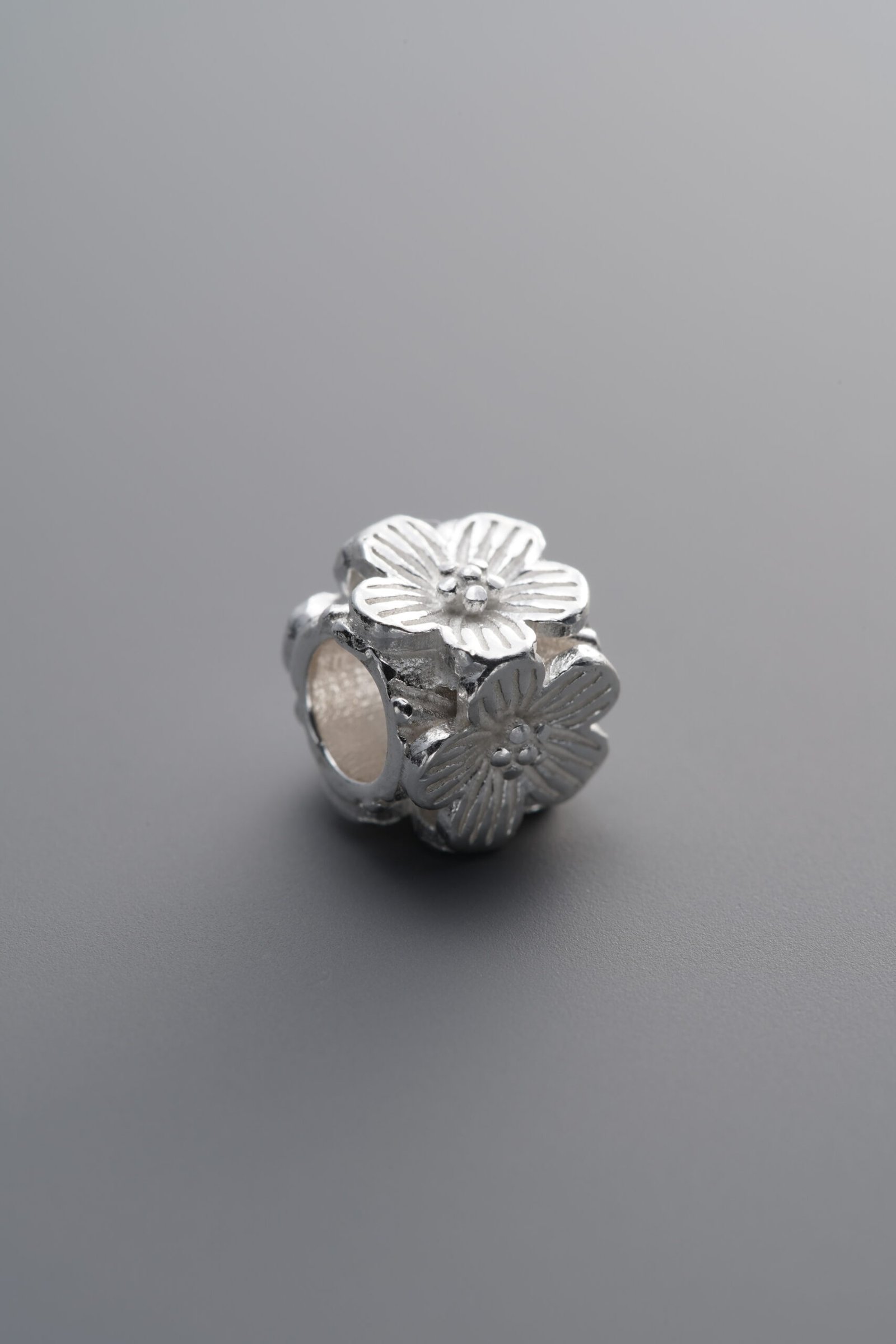925 Sterling Silver-Bright-Plum Blossom Four-Sided Flower Spacer Bead-8mm