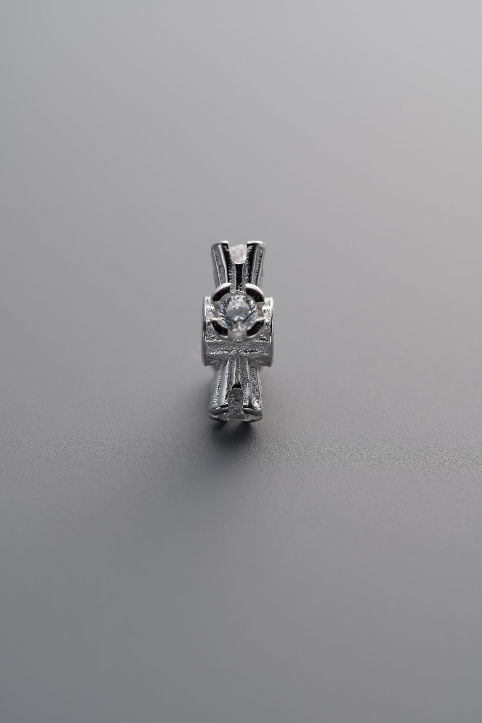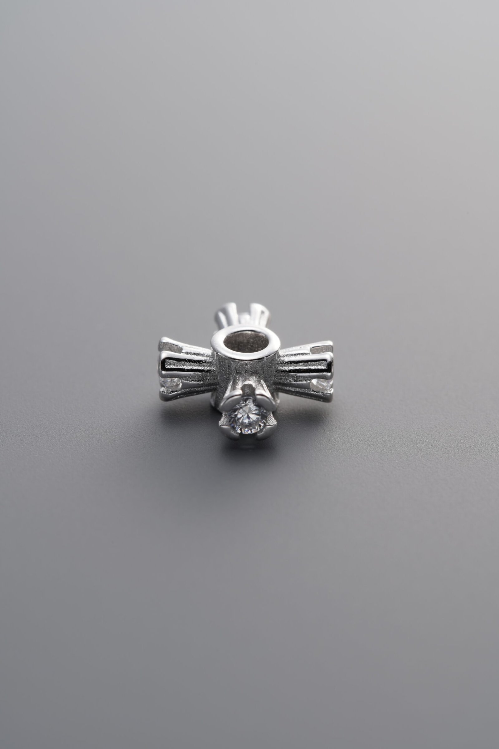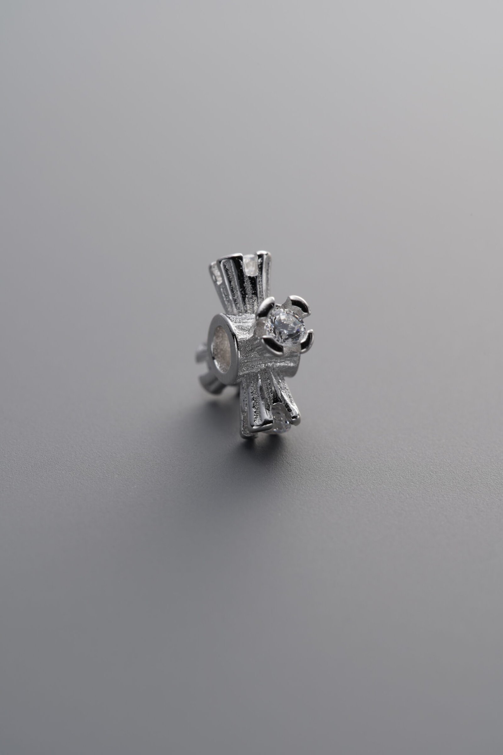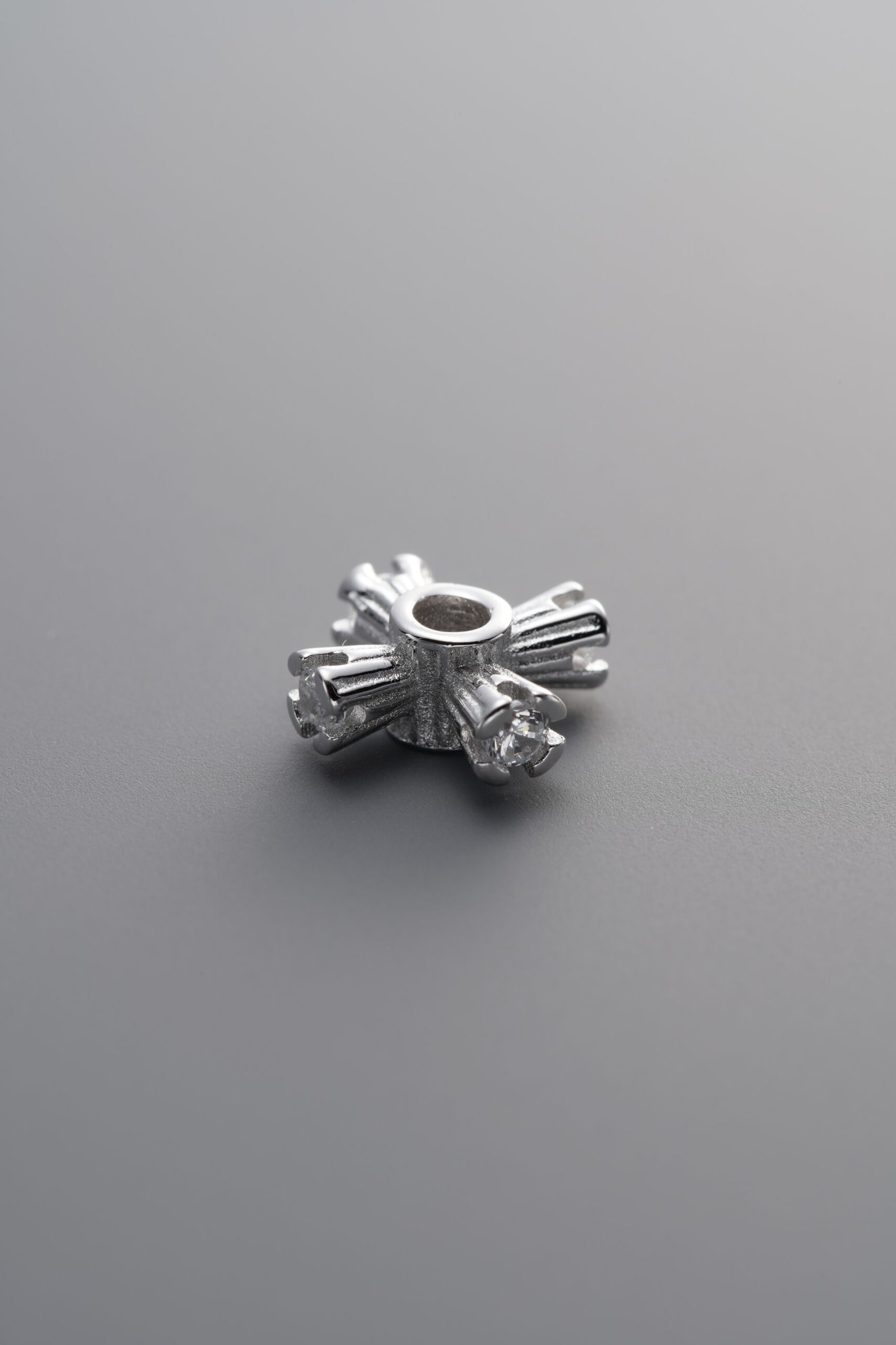 925 Silver-Plain-Zircon Cross Flower Circle Bead-8mm
