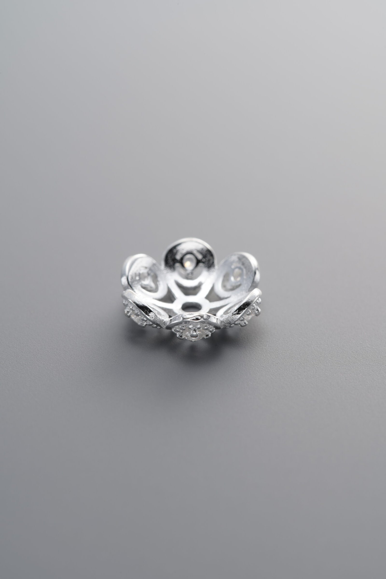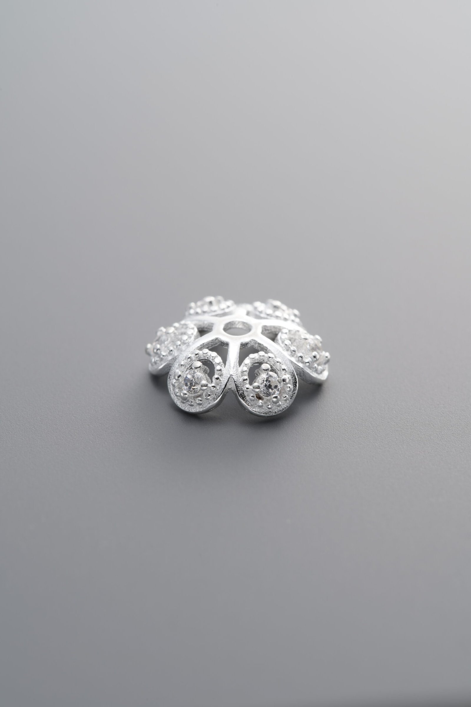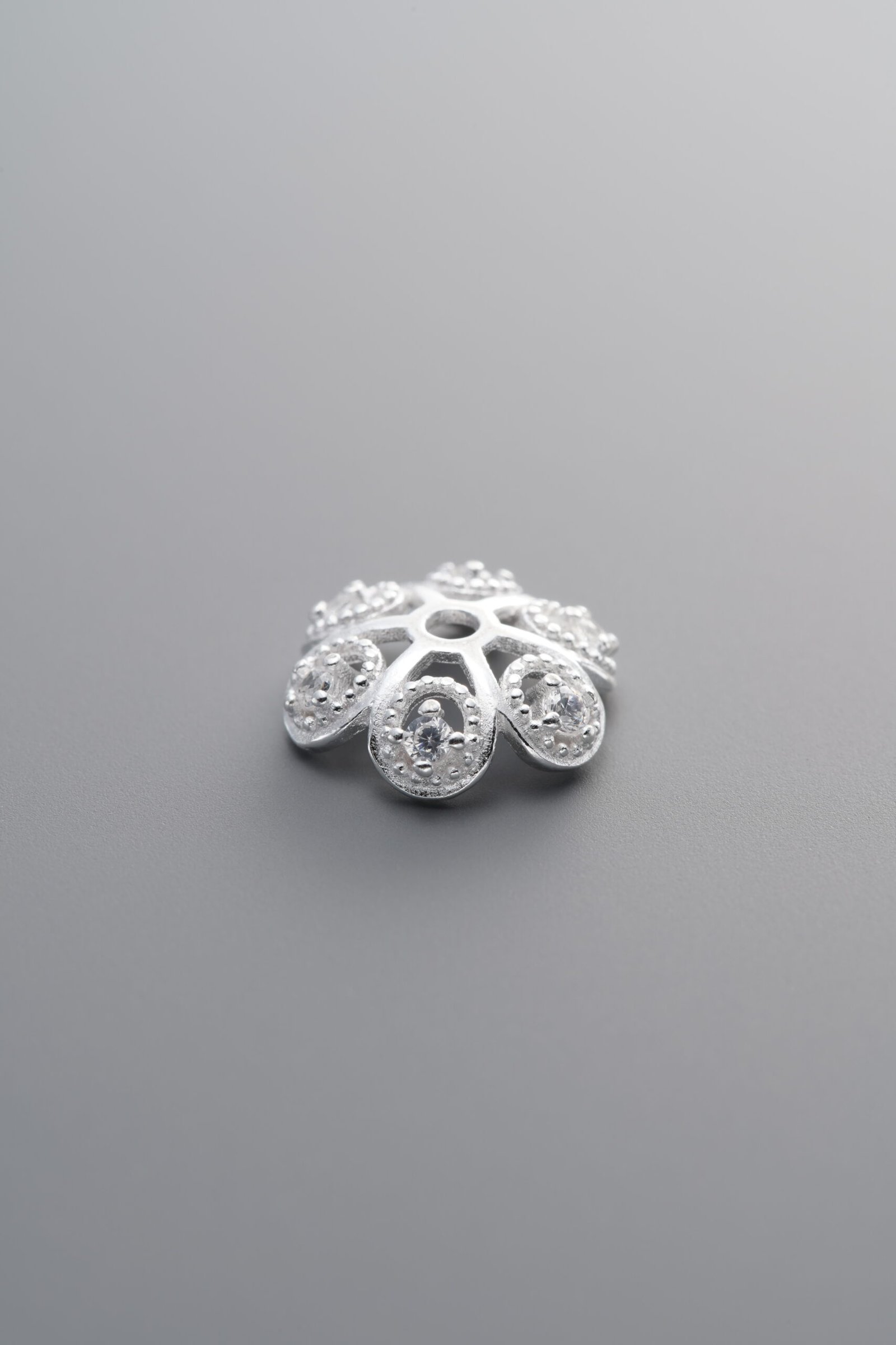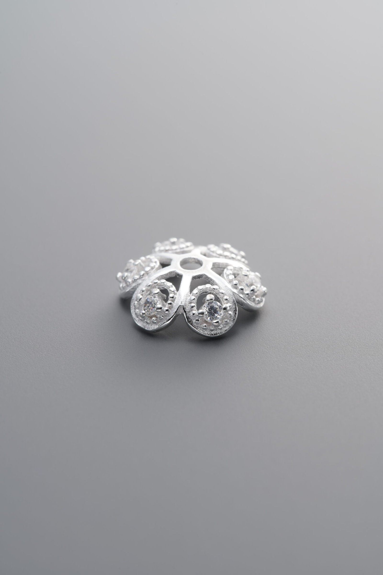 925 Silver-Plain-Zircon Flower Bead Cap-10mm