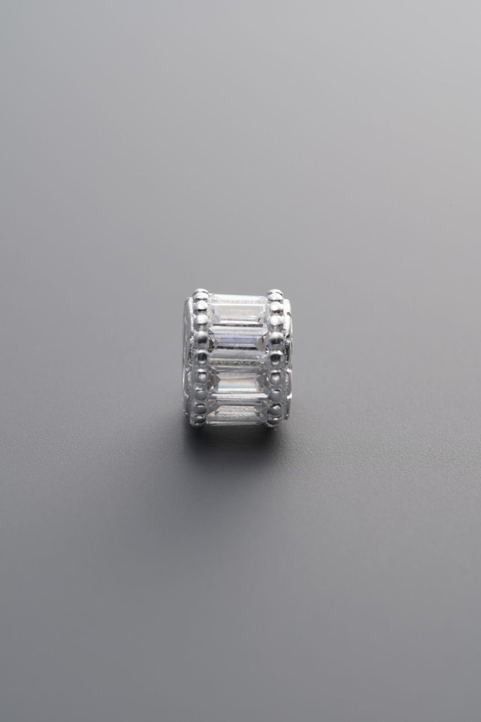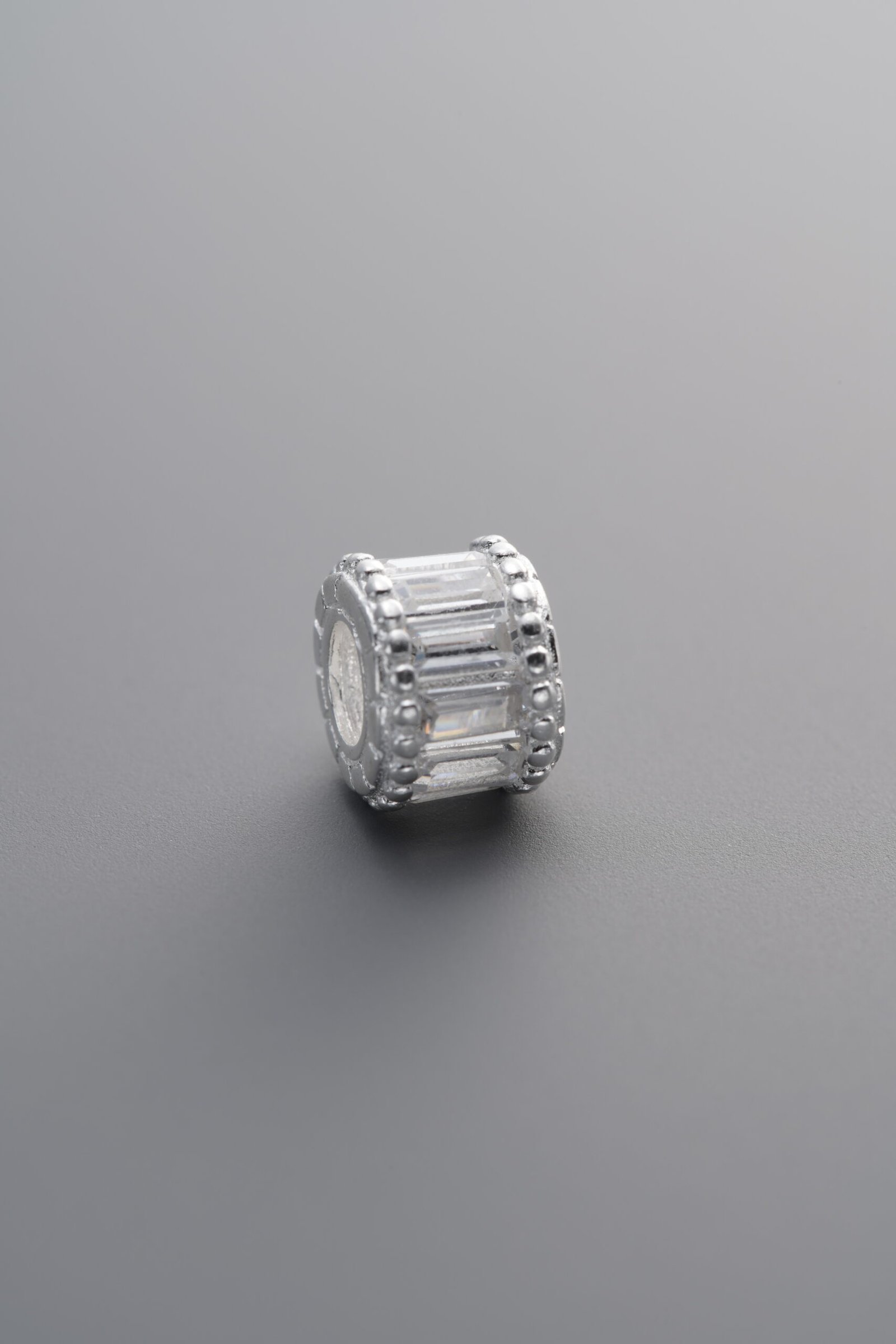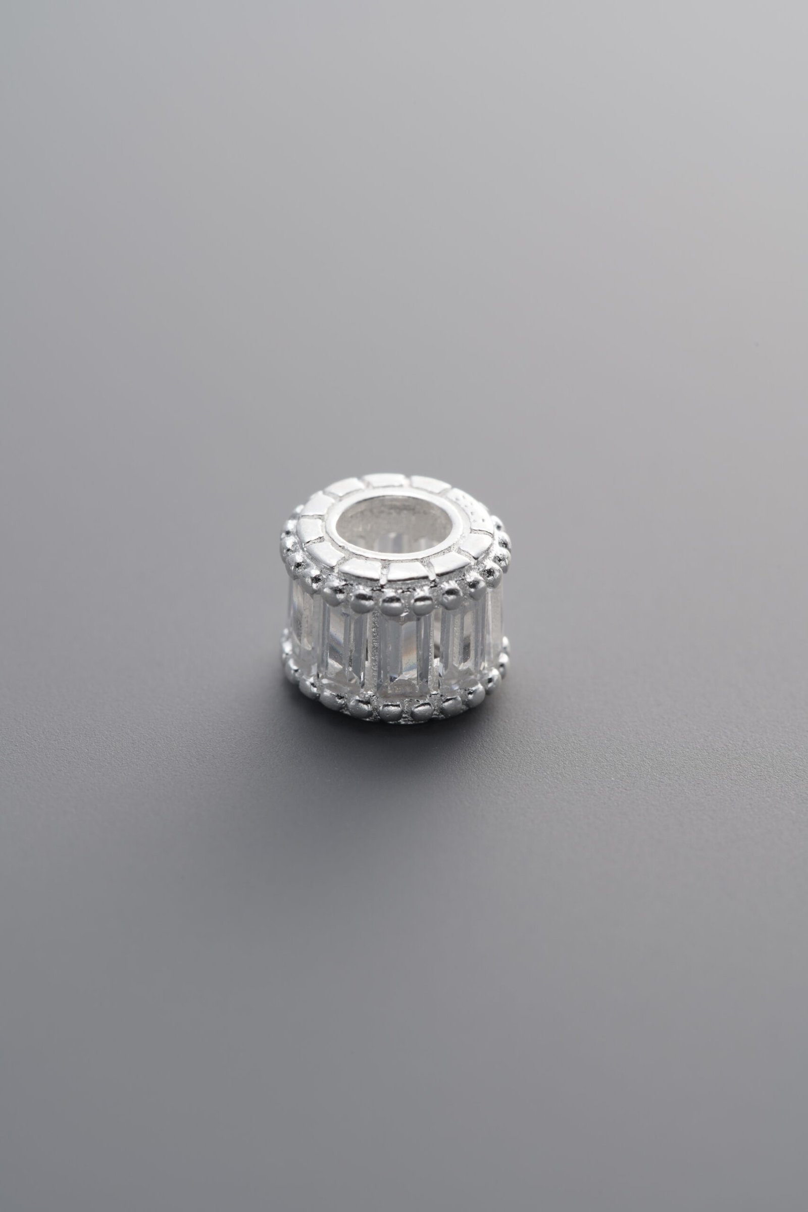 925 Sterling Silver-Bright-Zircon Wide Rondelle Bead-7mm