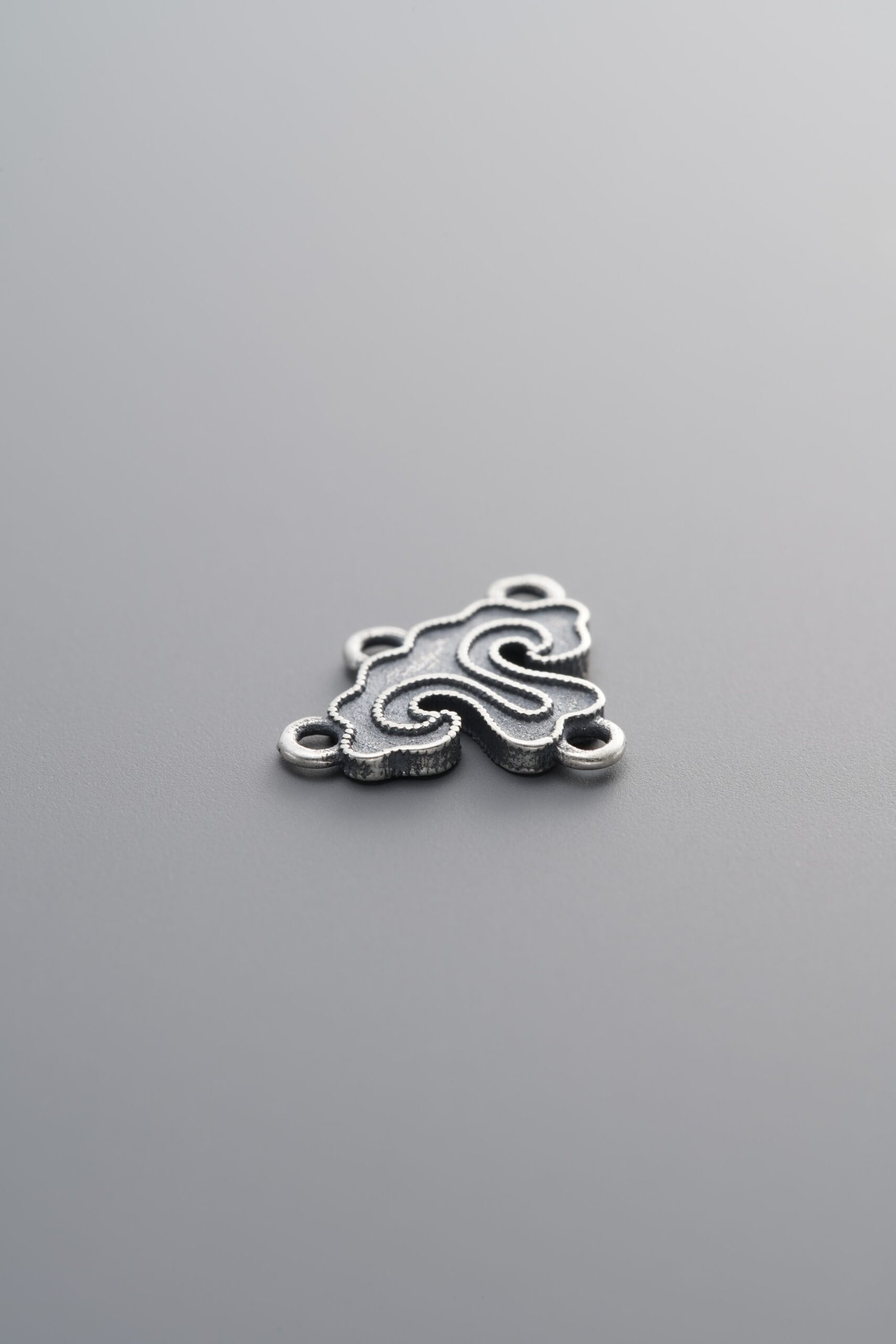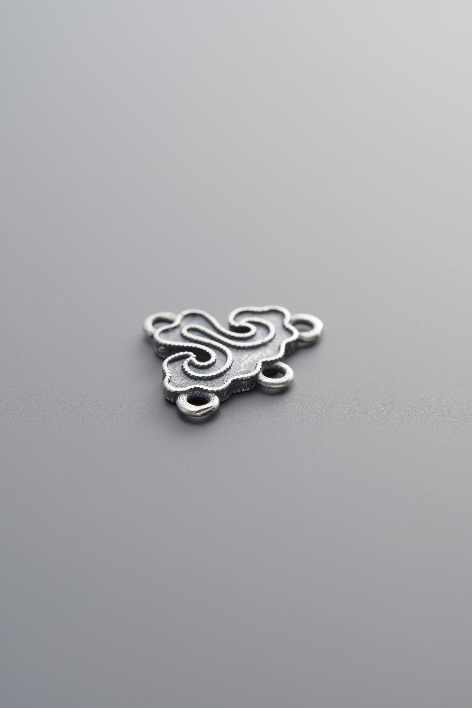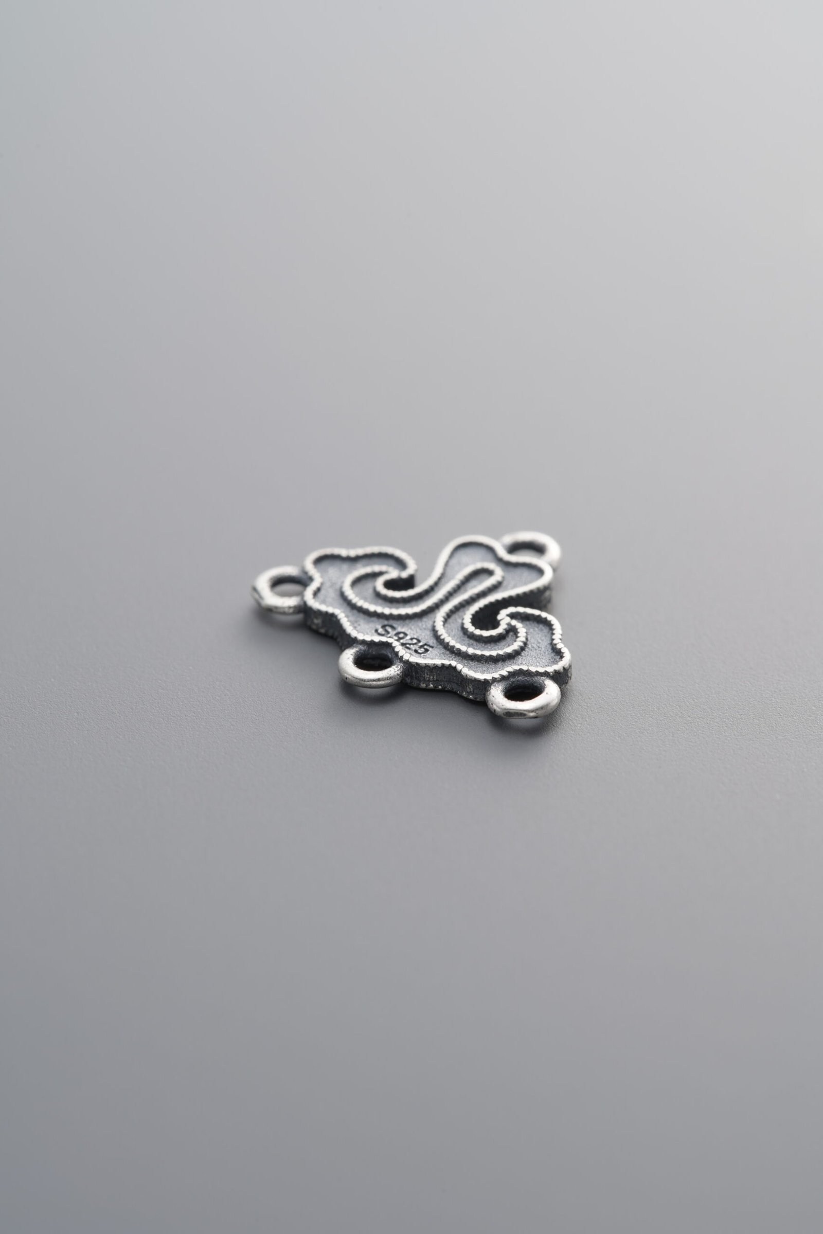 925 Sterling Silver-Antiqued-Auspicious Cloud Four Double-Eye Connector-13mm