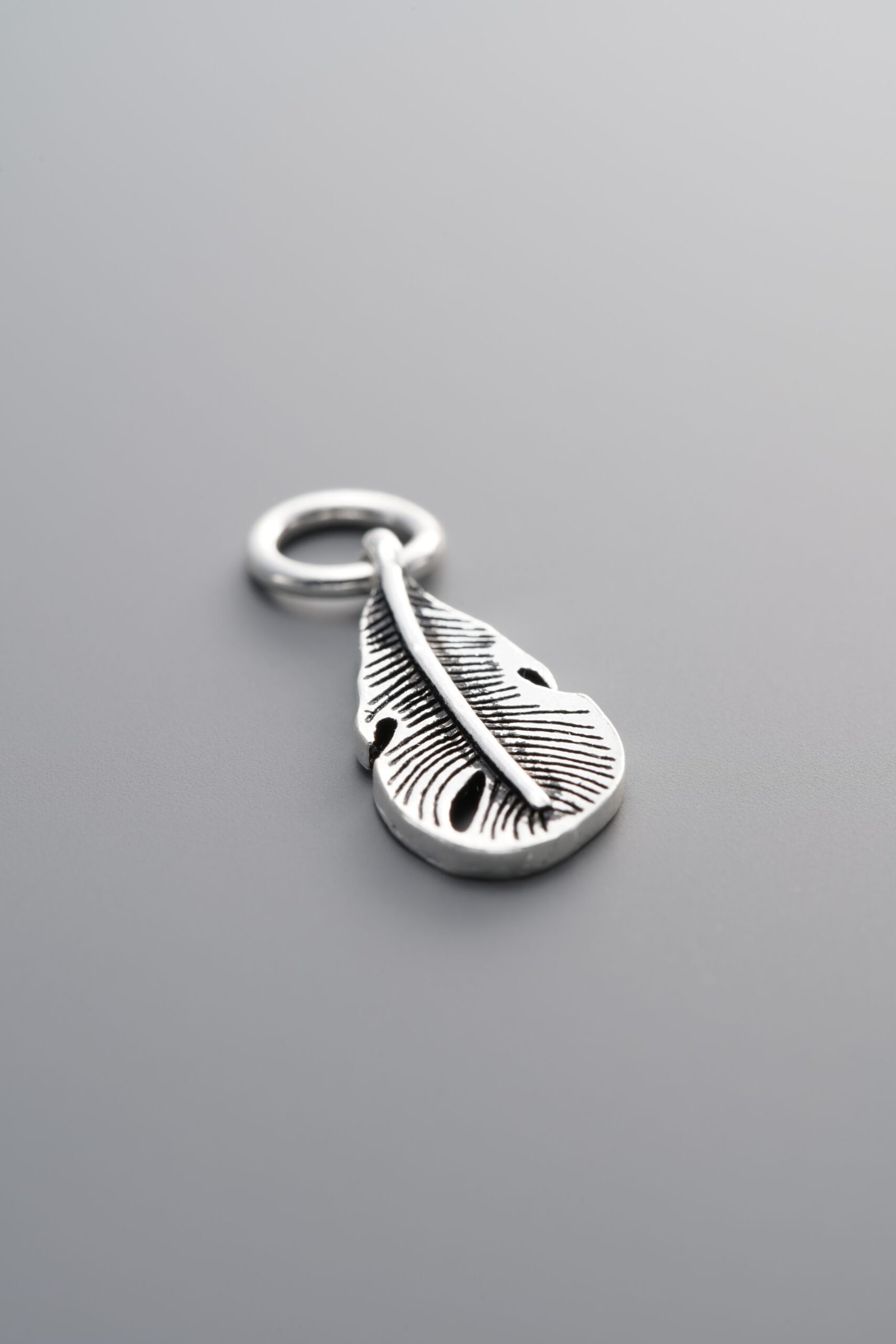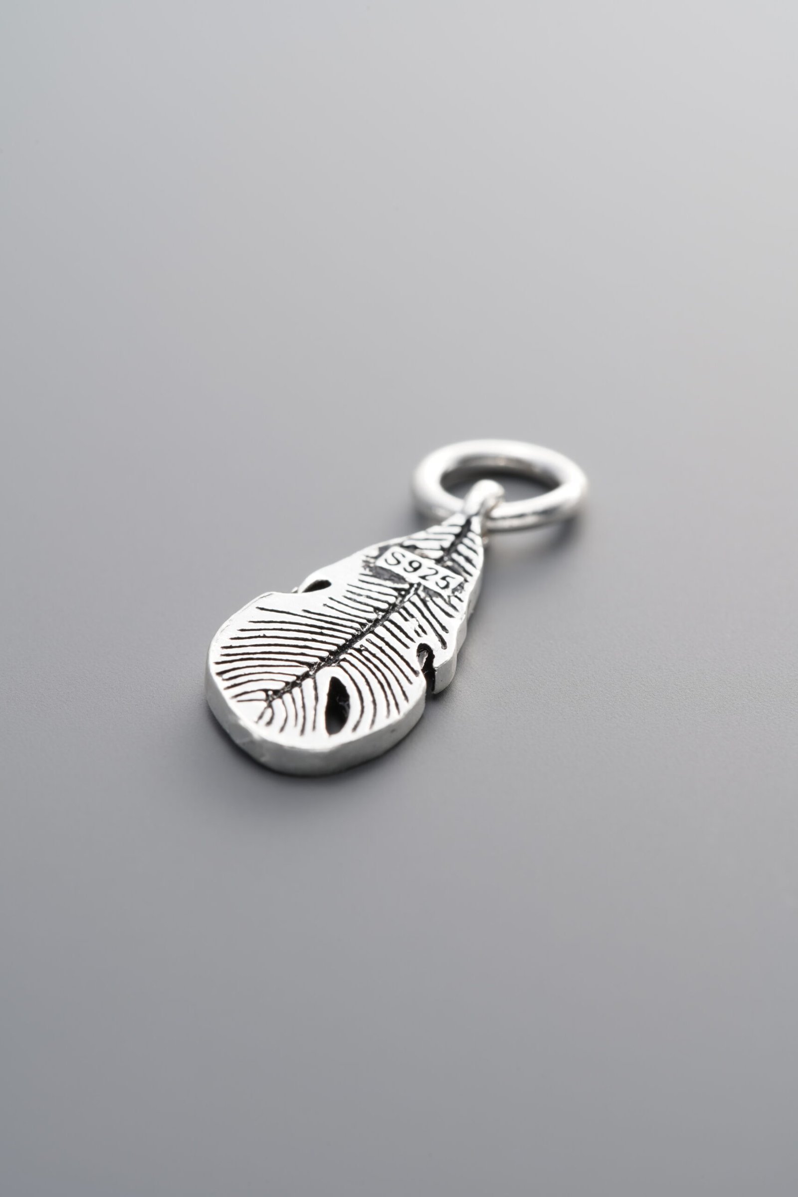 925 Sterling Silver-Antiqued-Feather Pendant-18mm