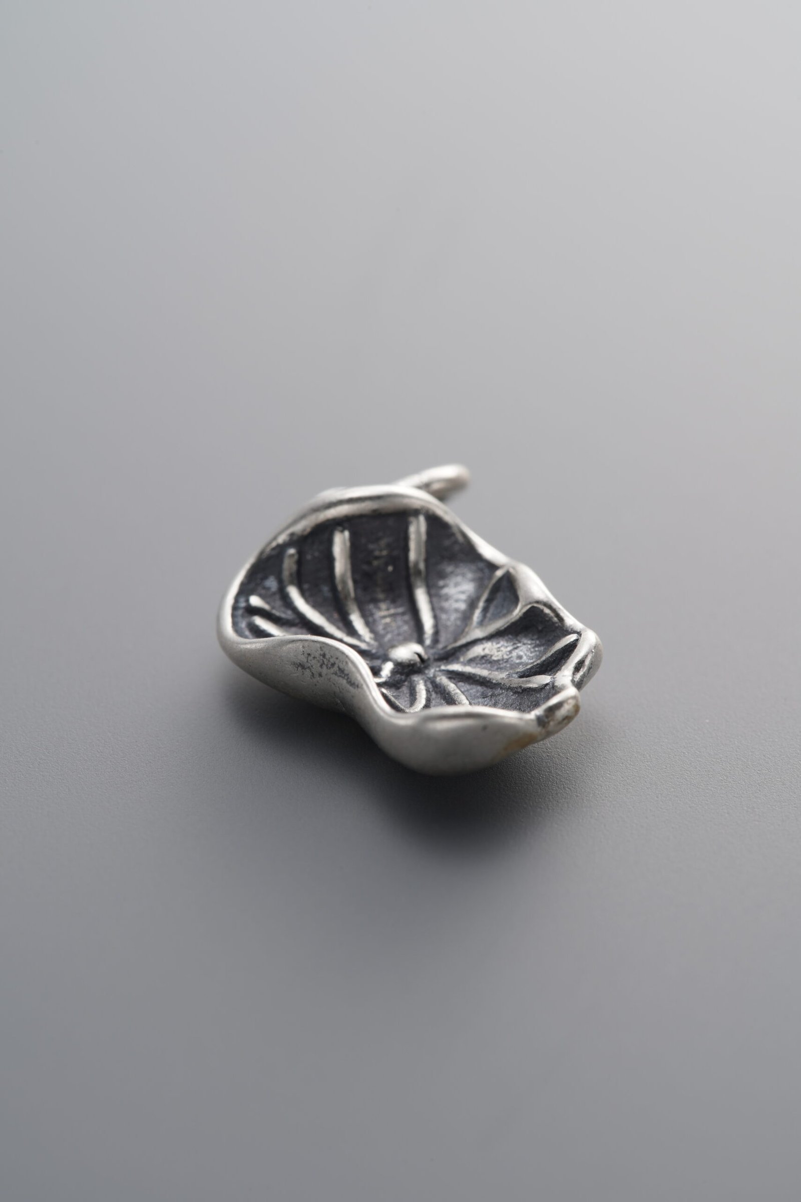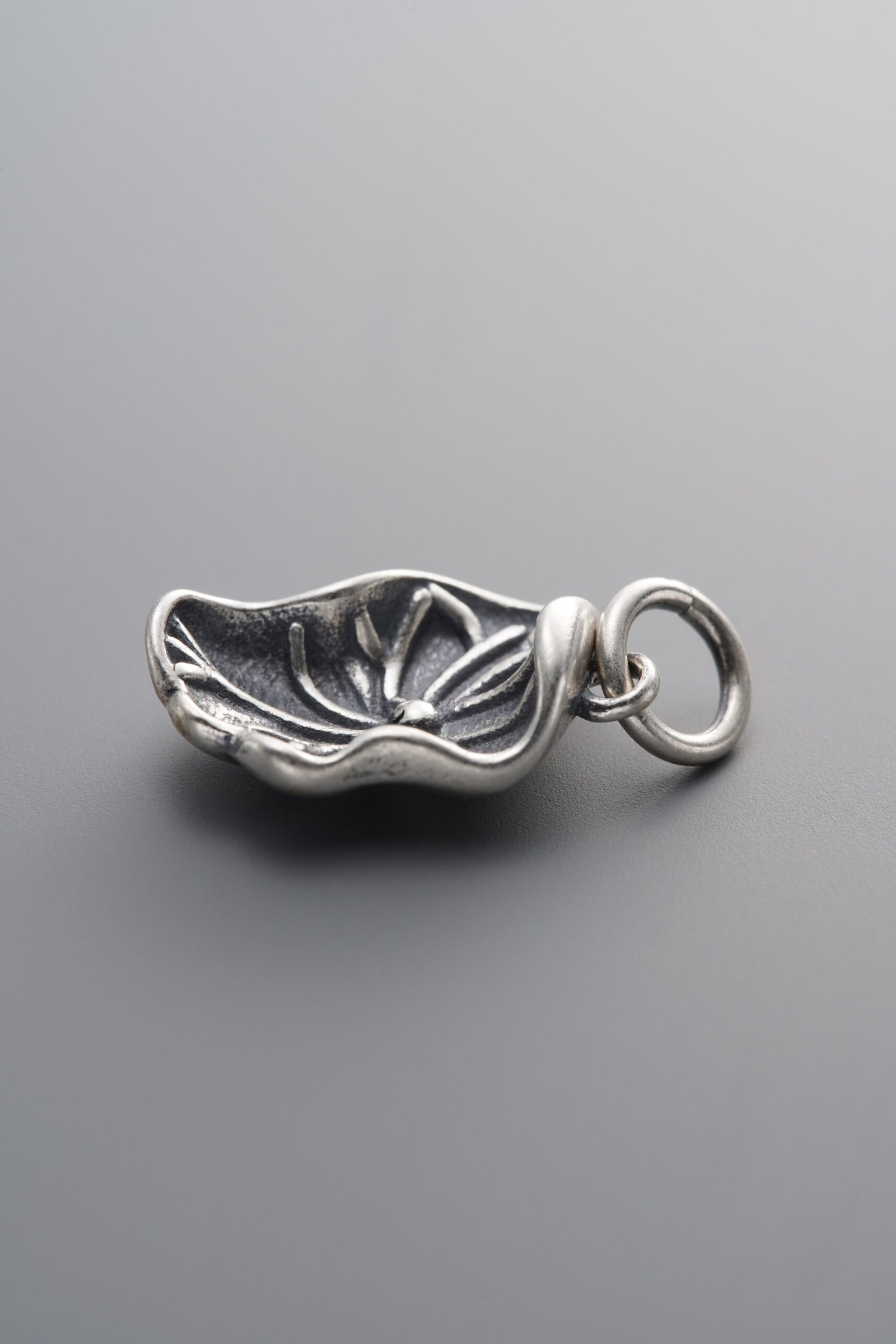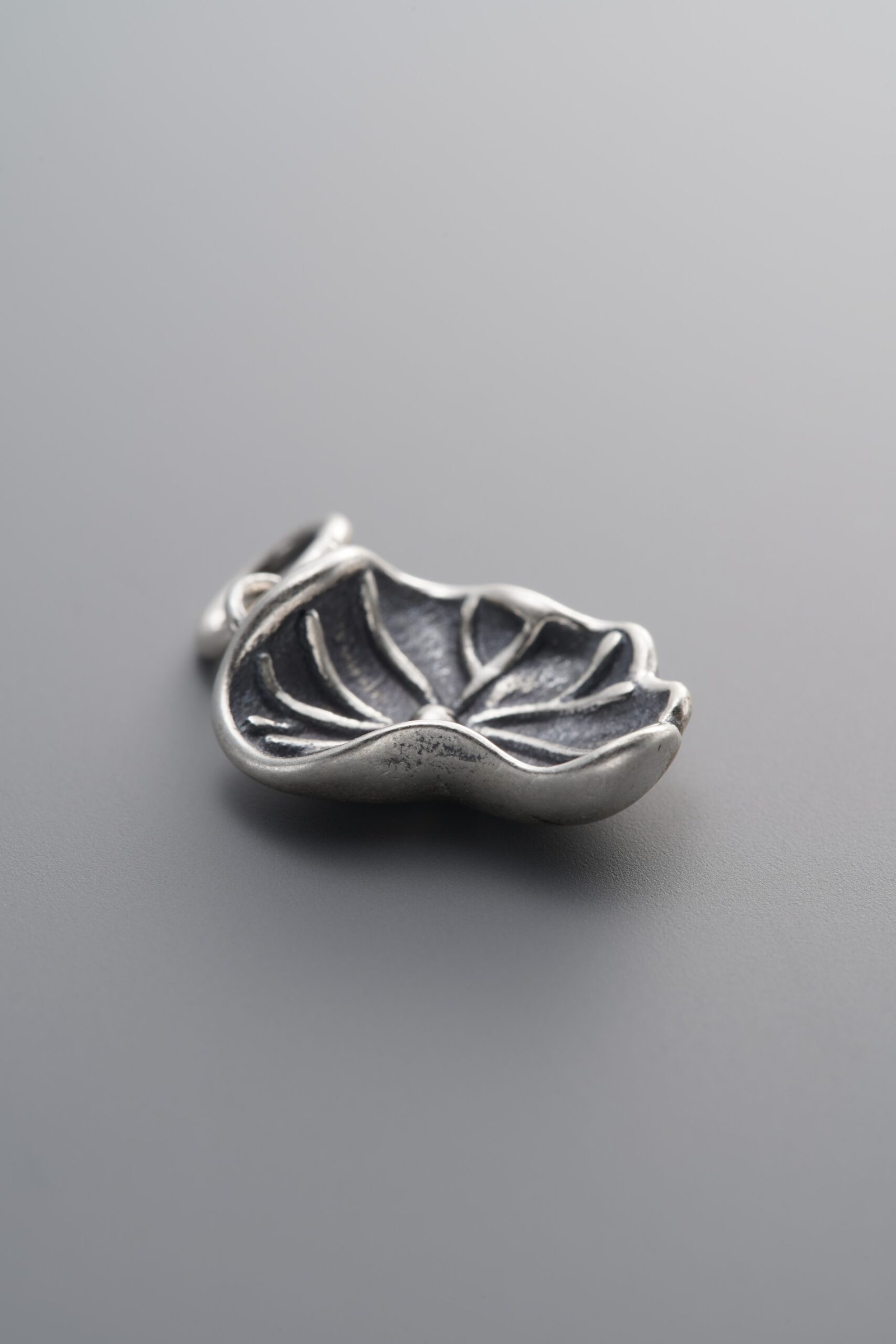 925 Sterling Silver-Antiqued-Lotus Leaf Pendant-15mm