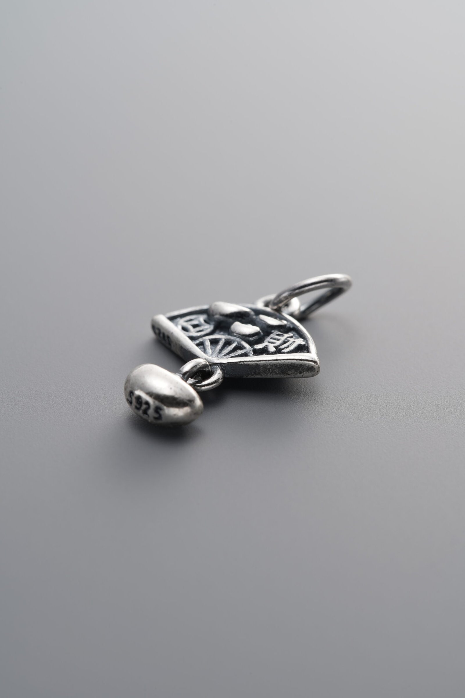 925 Sterling Silver-Antiqued-Wealth-Attracting Fan Pendant-15mm