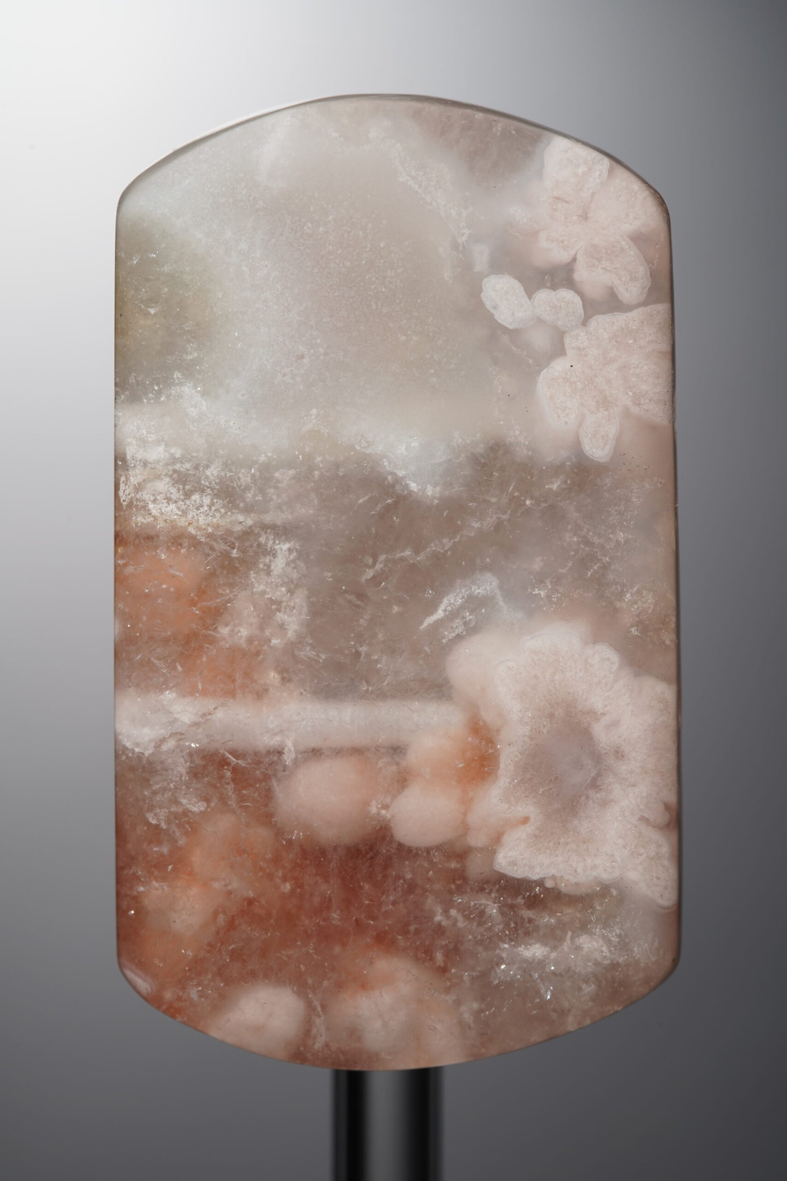 - Origin: A microcrystalline variety of quartz (cryptocrystalline chalcedony), formed in volcanic rock cavities. Silica-rich fluids deposit layer by layer over time, creating its signature banded patterns. It develops in low-temperature hydrothermal environments, with impurities (iron, manganese) coloring its layers.