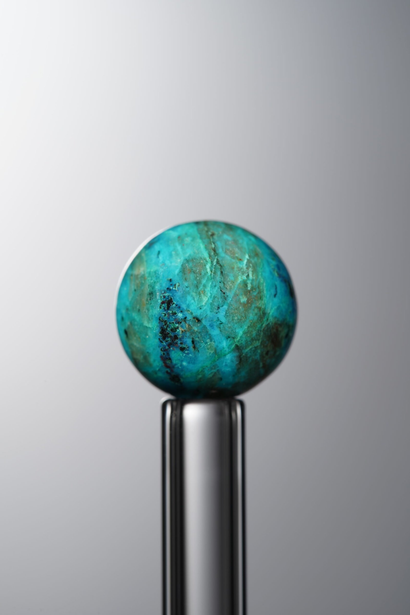- Appearance: Displays swirling patterns of turquoise, teal, and earthy browns, accented by metallic flecks from hematite. Texture ranges from smooth to slightly porous; luster varies from matte to vitreous. Semi-transparent to opaque, it resembles “a phoenix’s vibrant plumage frozen in stone.”