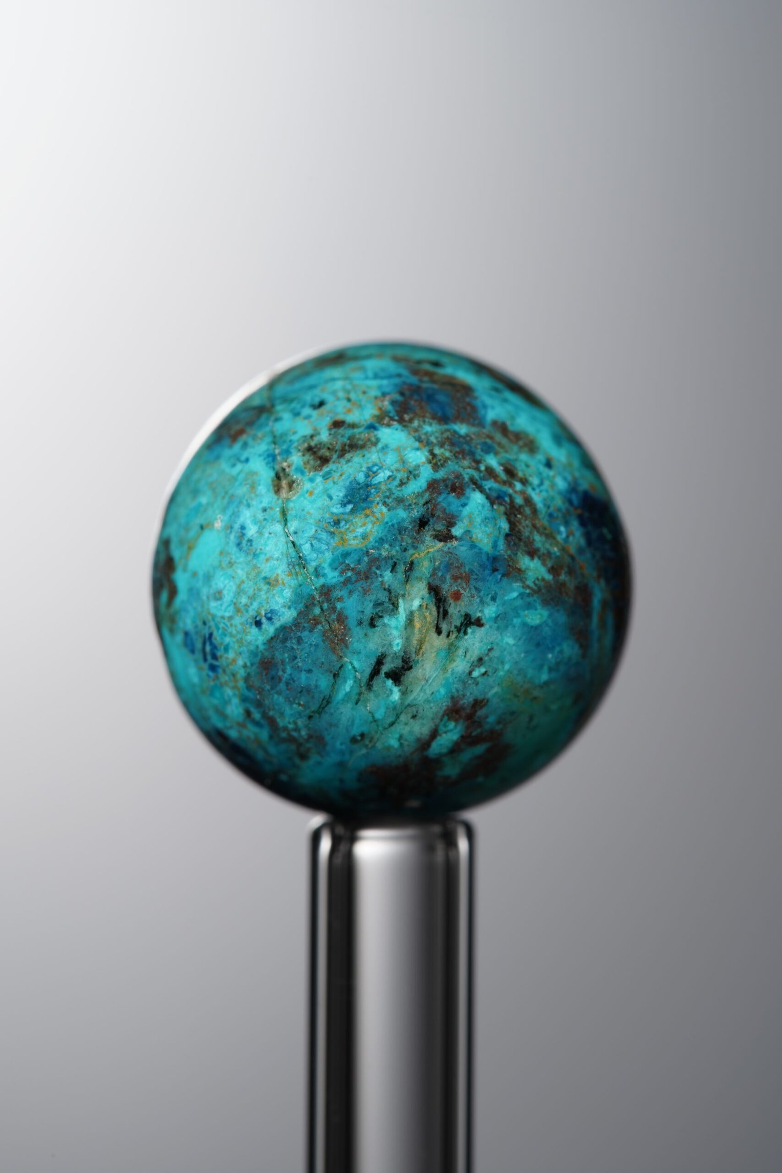 - Appearance: Displays swirling patterns of turquoise, teal, and earthy browns, accented by metallic flecks from hematite. Texture ranges from smooth to slightly porous; luster varies from matte to vitreous. Semi-transparent to opaque, it resembles “a phoenix’s vibrant plumage frozen in stone.”